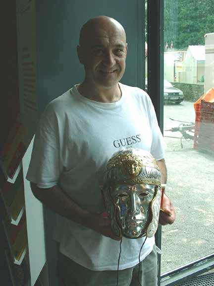 (An)Toni Feldon with his 'Varus helmet'.. |