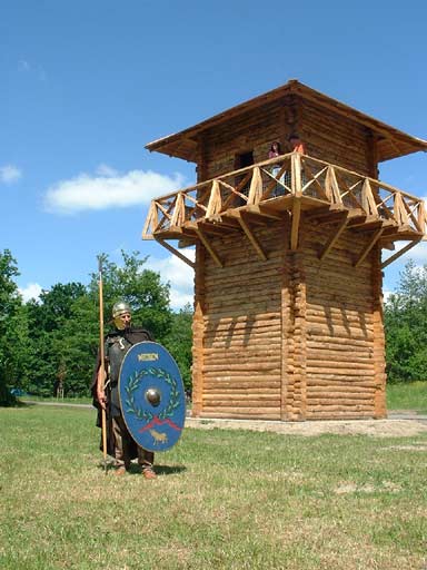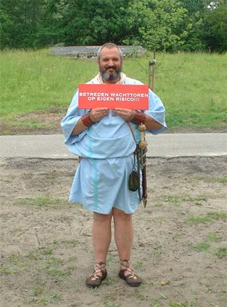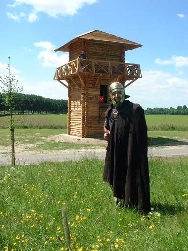 This section shows some of the pictures made while we're guarding the tower on sundays, members of Fectio, Corbvlo and Legio X Gemina taking turns. October 17th, the last day A rather bleak last day in which Andreas was joined by two of legionaries of Leg. X Gemina, Sander and Ronald. A day in which it also turned out that Andreas in his 4th-c. Late Roman clothing was much better adapted to colder weather than his 2nd-c. counterparts, who had freezing extremities despite the open fire. Gotta be a Late Roman, gentlemen! The tower will now be closed down for the winter. see you next spring!