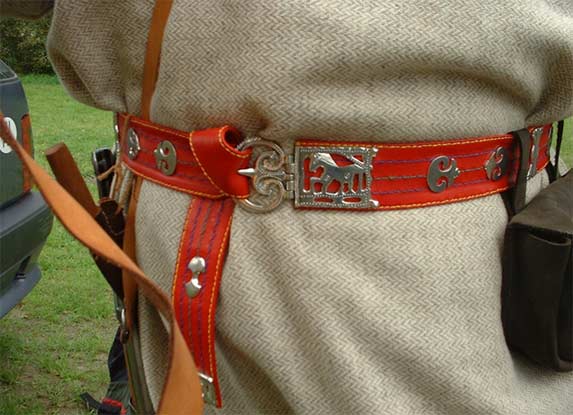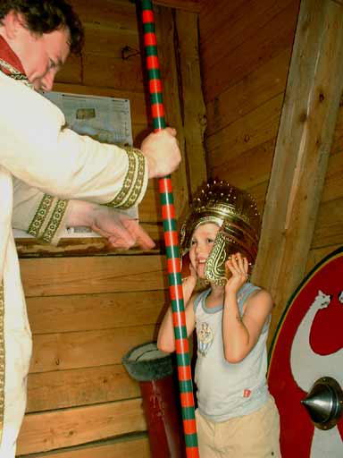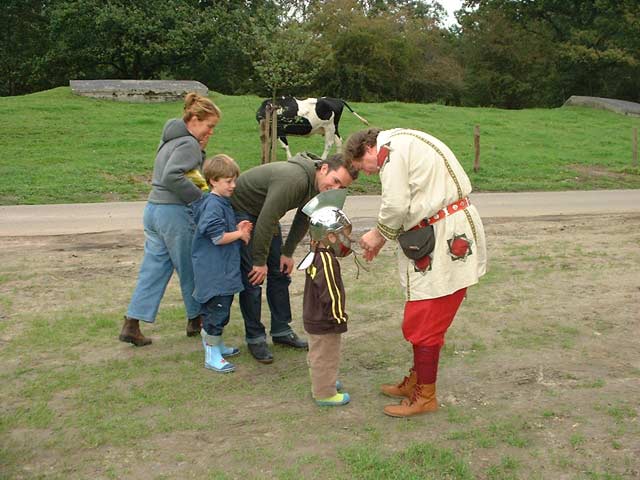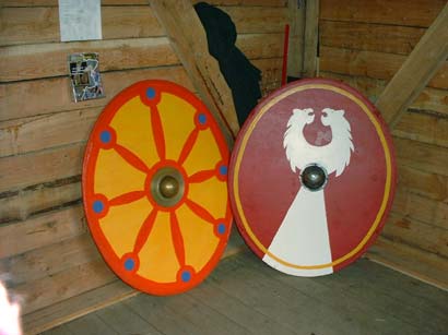 October 3rd, a slow day A grey day, but dry and not cold yet. Andreas had the tower to himself, and not many visitors stopped by - just about 40. Too bad, he had a new cingulum to show: a late 4th c. belt from Argeliers, southern France, and a beauty it is! Fectio was out in full force at the tower, for a change (that's me and Andreas), and we had the tower to ourselves. That meant a colourful row of shields in front and the draco flying from the battlements! The weather was fine again after days on end full of rain and wind, it turned out we had a lucky break and no less than 600 visited the fort! A fair number of these came to see us on the tower, mostly kids and their parents this time. So, we had our hands full of show & tell with eager little people, most of them very interested and waiting in line to try out our gear. We had brought a chair (fearing long hours of boredom) but as it turned out we hardly had a moment to sit down!