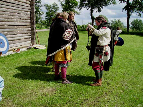 The Minervii had come all the way from Münster, just for a day at the tower, which we thought was very cool of them! Of course we jumped at the chance to get some company on our lonely watch. The guests brought plenty of new arms and armour for us to see, not to mention beautiful clothing which we admired a little jealously.