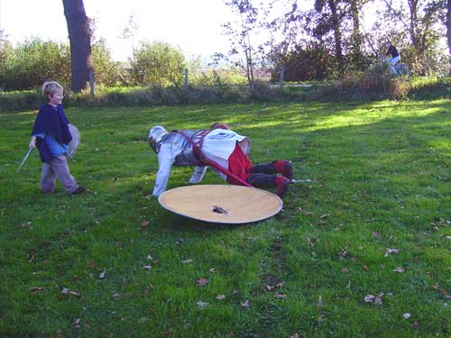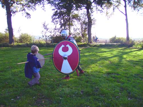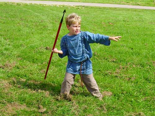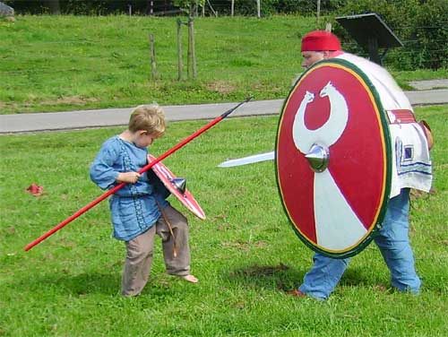 fighting his old man - watch out for that javelin! Of