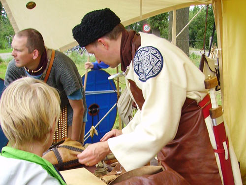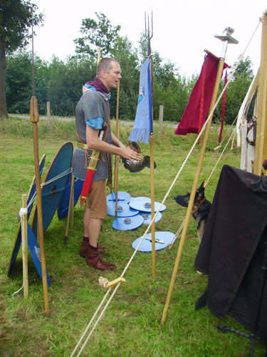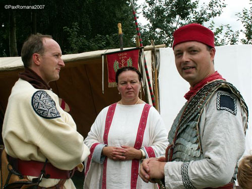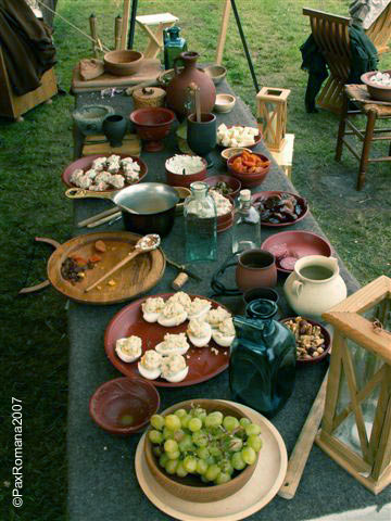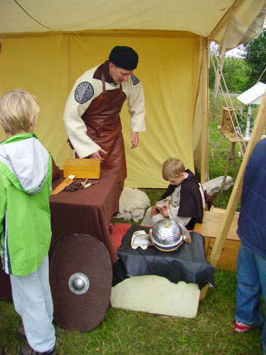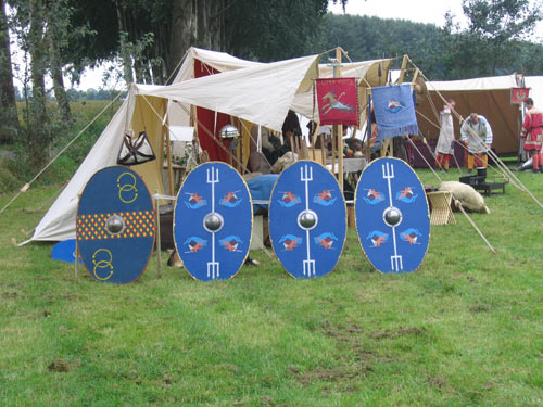Roman camp. From left to right, three open tents from Pax