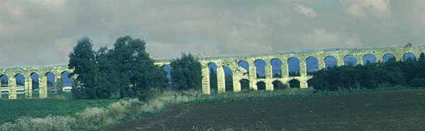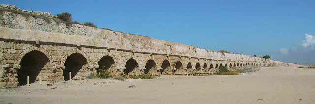 The Aqueduct, which provided an abundant supply of water, was built in the Herodian period; it was later repaired and enlarged to a double channel when the city grew. The upper aqueduct begins at the springs located some nine kilometers northeast of Caesarea, at the foot of Mt. Carmel. It was constructed with considerable engineering know-how, ensuring the flow of water, by gravity, from the springs to the city. In some portions, the aqueduct was supported by rows of arches, then it crossed the kurkar ridge along the coast via a tunnel. Entering the city from the north, the water flowed through a network of pipes to collecting pools and fountains throughout the city. Many inscriptions in the aqueduct ascribe responsibility for its maintenance to the Second and Tenth Legions.